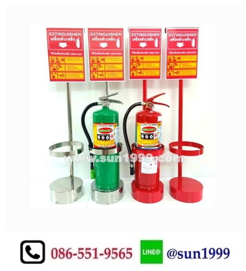 ขาตั้งสแตนเลน สำหรับวางถังดับเพลิง พร้อมป้ายวิธีใช้งาน