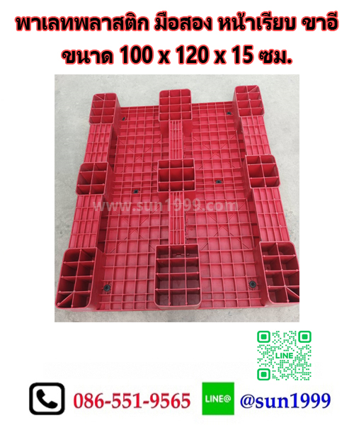 - พาเลทมือสอง ขนาด 100 x 120 x 15 ซม. หน้าเรียบ ขาอี สีแดง