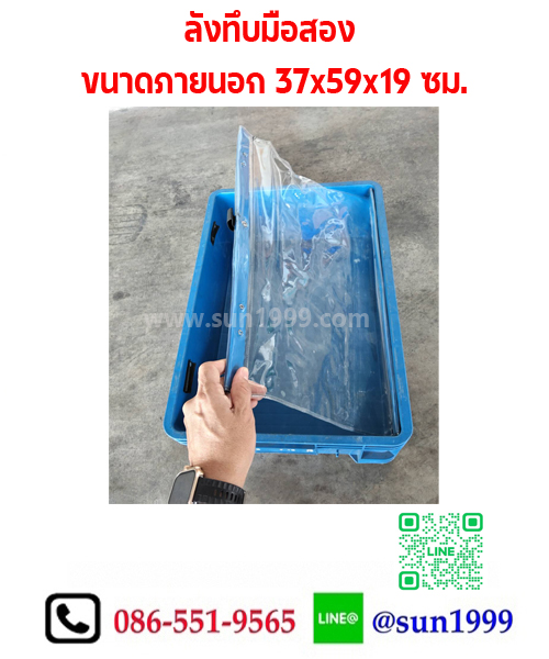 ลังทึบมือสอง สีน้ำเงิน มีแผ่นพลาสติกใส ปิด - เปิด ได้ที่ด้านบนของลัง